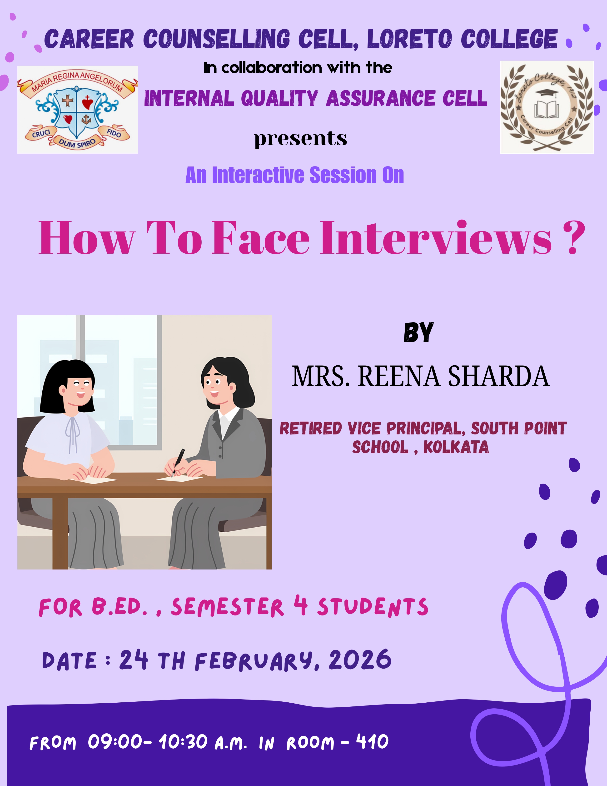 Session on Interviews for B.Ed Sem 4 By Mrs. Reena Sharda